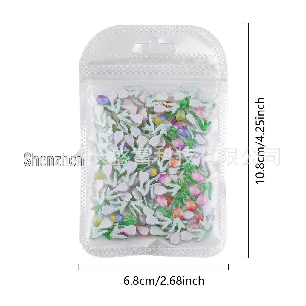 Elevate your style with this exquisite collection of nail art decorations and accessories. Designed for versatility and creativity, this set includes luminous tulip-themed charms perfect for crafting bespoke earrings and enhancing hair clips. Each piece is elegantly crafted to capture light and add a touch of brilliance to your accessory creations. Ideal for DIY enthusiasts, this collection allows you to unleash your artistic flair and personalize your look with ease. Whether adorning your nails, jewelry, or hair, these decorations offer endless possibilities for self-expression and sophistication.