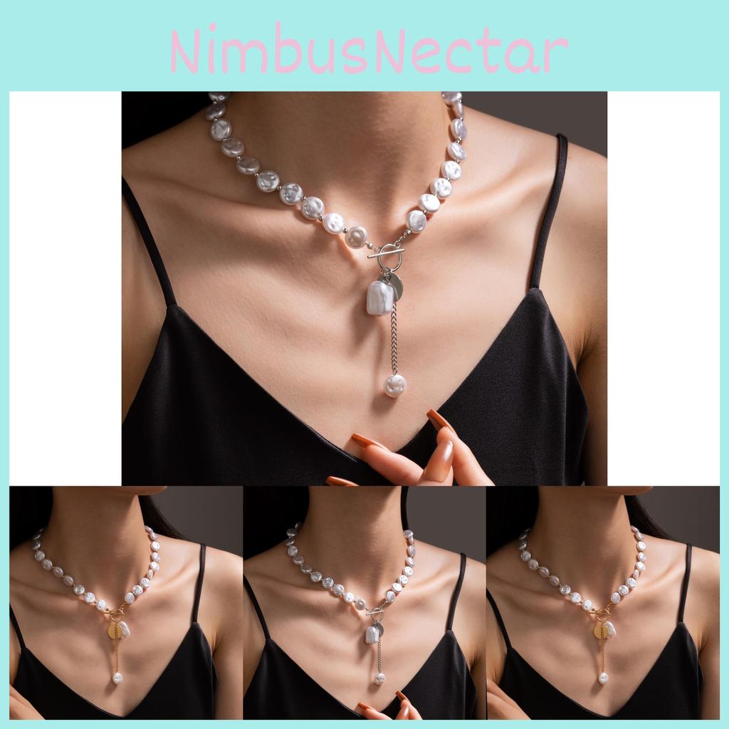 **Trendy Minimalist Baroque Flat Pearl Choker Necklace for Women**