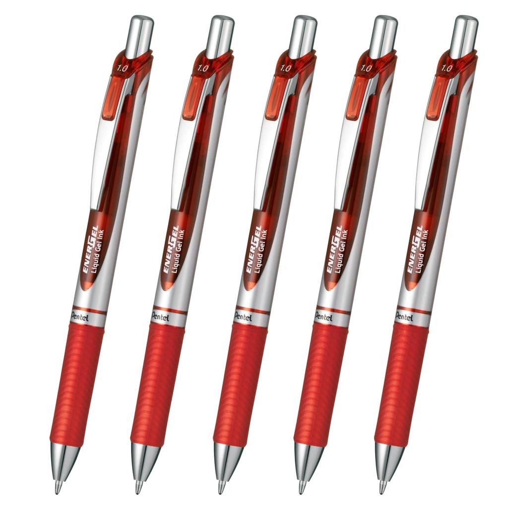Pentel Energel Gel Ink Ballpoint Knock Silver 5 Pens Pen, Type, 1.0mm, Barrel, XBL80-B, Red,
