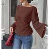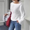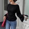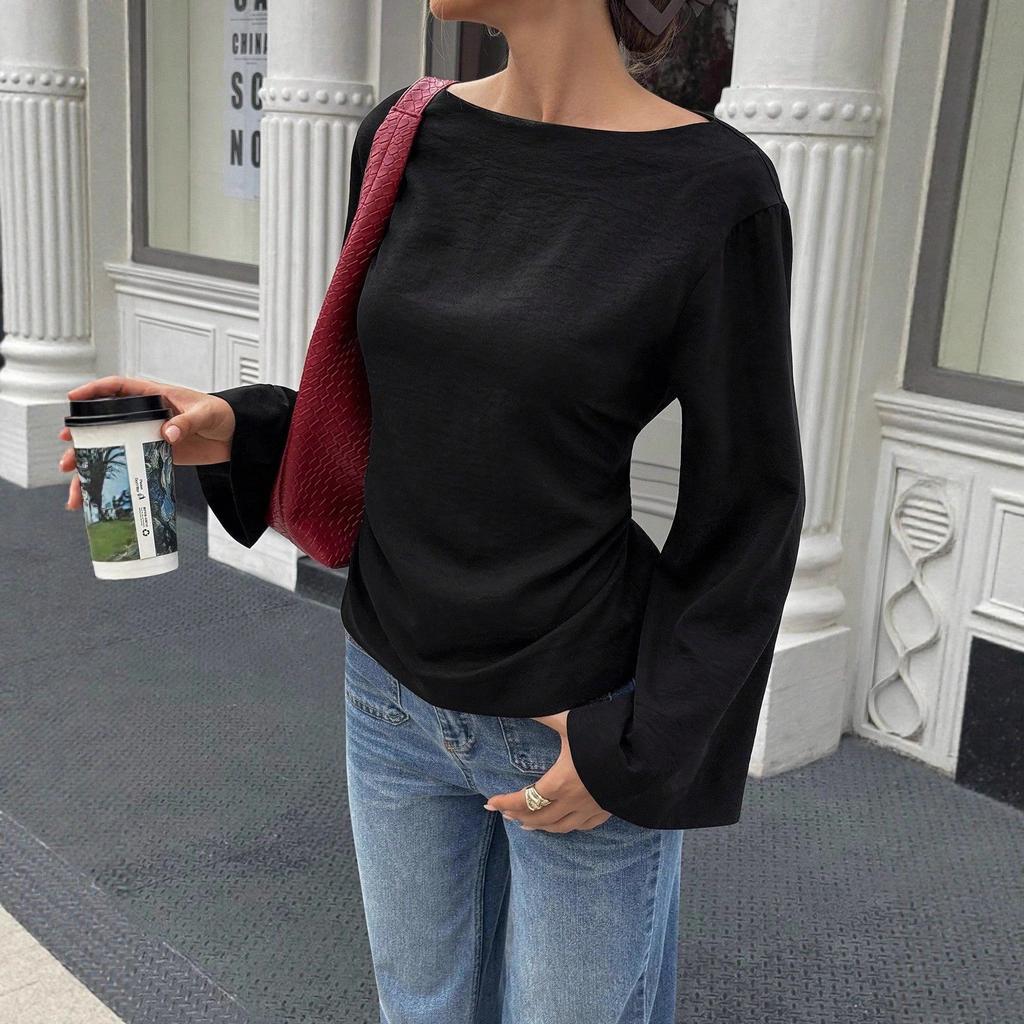 New Color-block Trendy Casual Versatile Fitted Boat-neck Personalized Street-style Wide-sleeved Top T-shirt