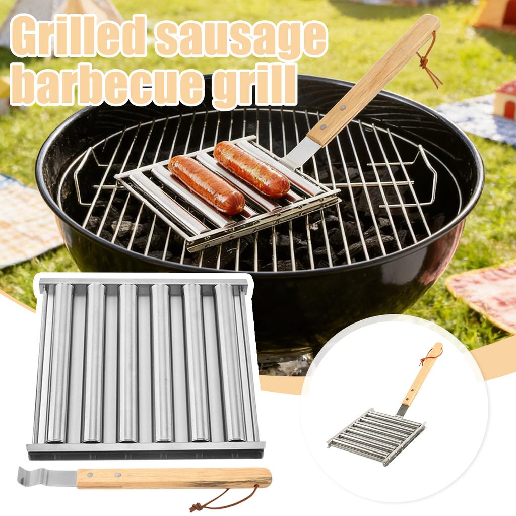 Hot Dog Roller Sausage Rack With Extra-long Wooden Handle, Roasting, Suitable For Evenly Cooked Food