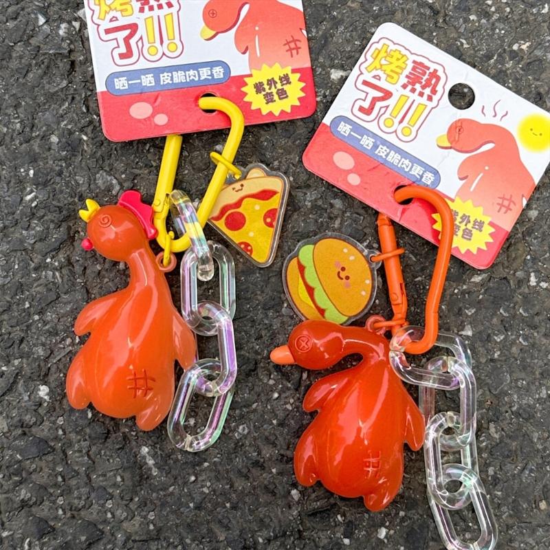 This color changing roast duck/chicken creative pendant changes color in the sunlight and acts as a uvs indicator, adding a strange touch to your car or backpack accessories.