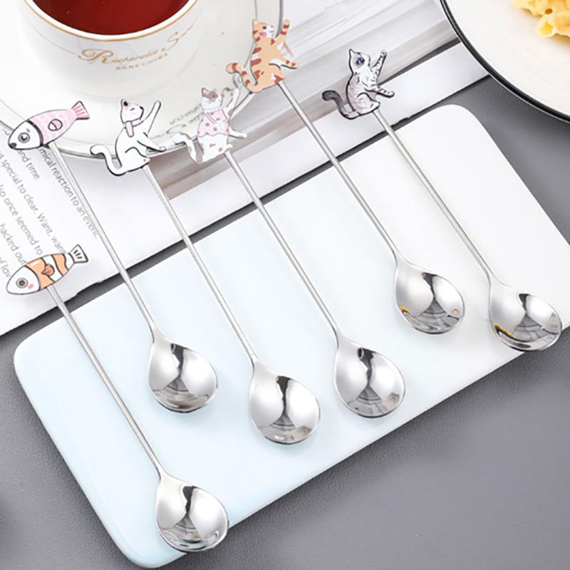 Cute Paintings Cat 304 Stainless Steel Spoon Hollow For Coffee Tea Dessert Spoon Kitchen Tableware Gifts For Students Children