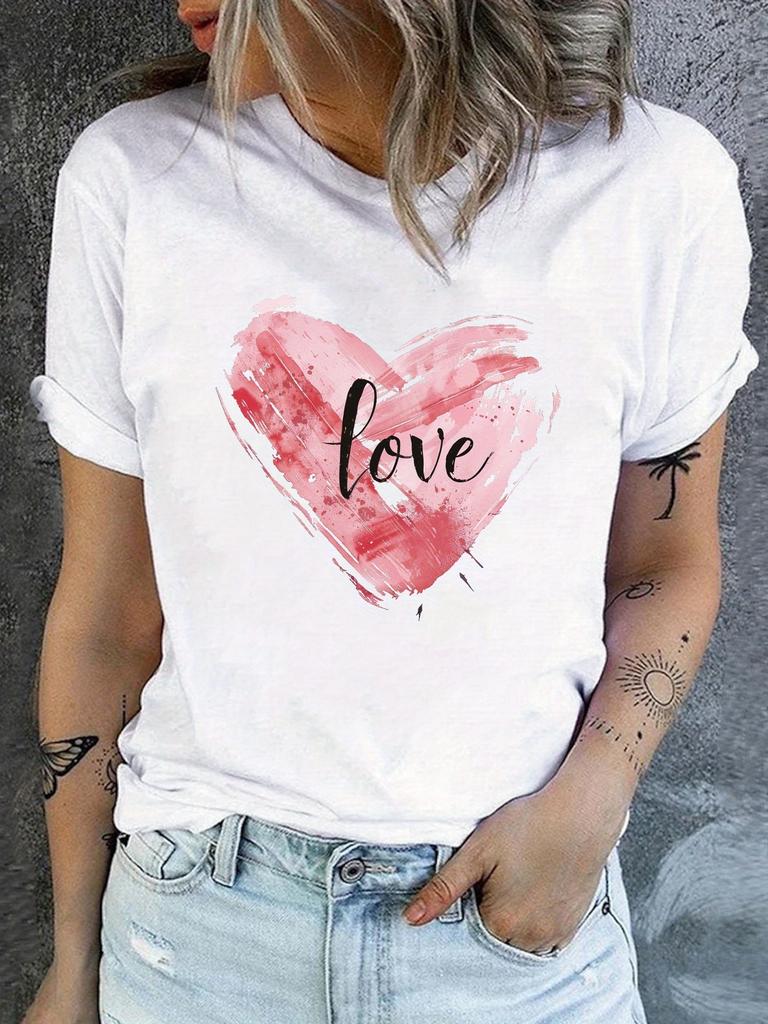 Heart Print Crew Neck Tshirt Casual Short Sleeve Top for Short Sleeve Harajuku Streetwear Tops Tees Aesthetic Clothes