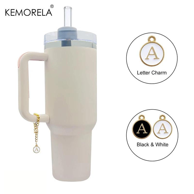 2PCS 26 Letters A To Z Charm Gold Chain Accessories for Ice Cream Tumblers 20 30 40 Oz Glass Tumblers with Handles