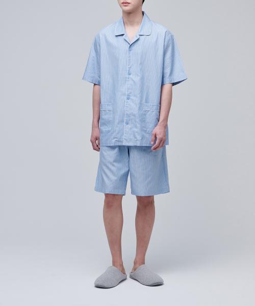 [Musinsa Standard] Cotton Tencel Half Pajama Set [Sky Blue Stripe] [Shipped from Korea] 100% Authentic