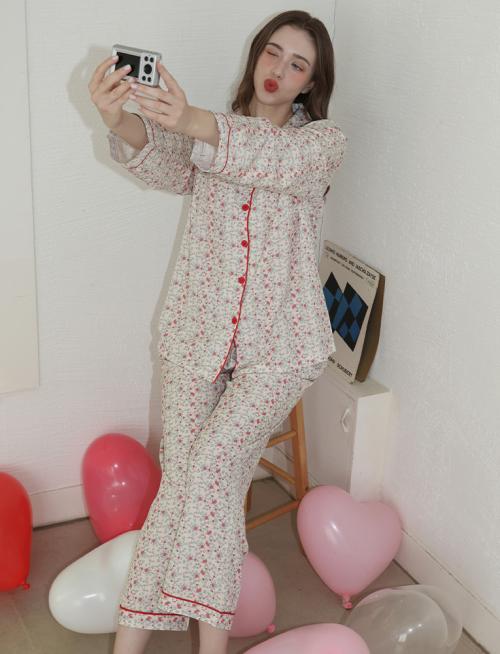 [Judyn] [2PACK] Vintage Floral Peach Brushed Long Sleeve Pajama Set [Shipped from Korea] 100% Authentic