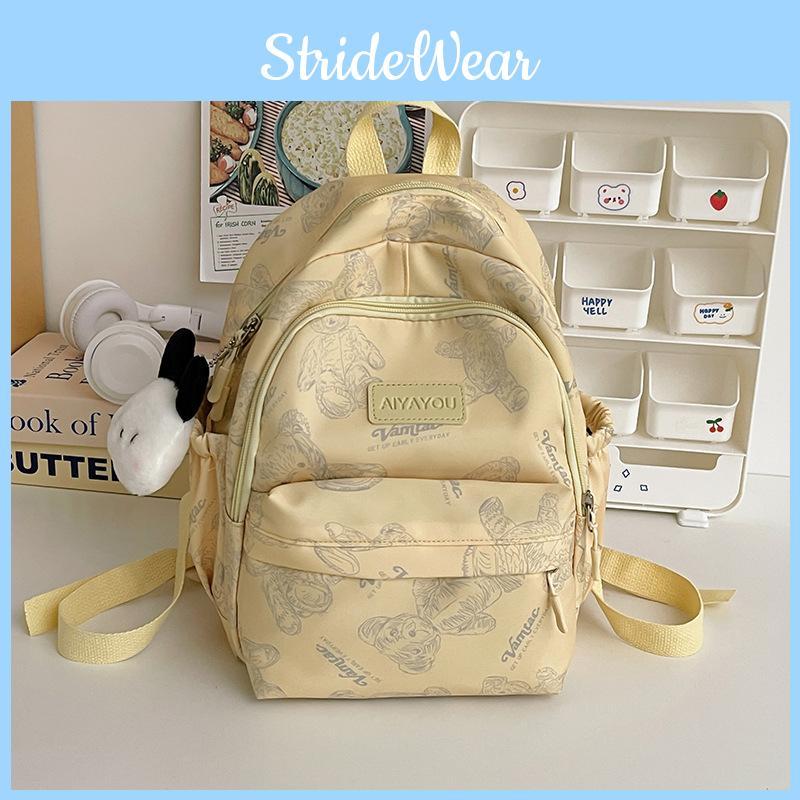 Charming Bear Pattern Backpack Versatile Lightweight Nylon School Bag For Casual Style