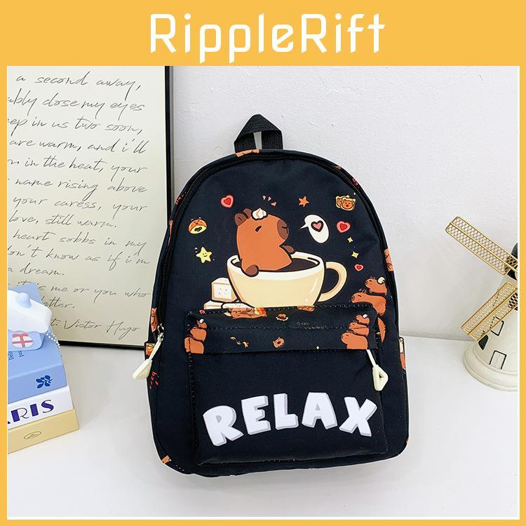 This childrens backpack features a lightweight design made from durable nylon,It offers breathable comfort with padded, curved shoulder straps and resists wear with reinforced stitching. The vibrant cartoon capybara print adds playful appeal. Ideal for preschool daily use, it supports kids active lifestyles and can be easily wiped clean with a damp cloth.