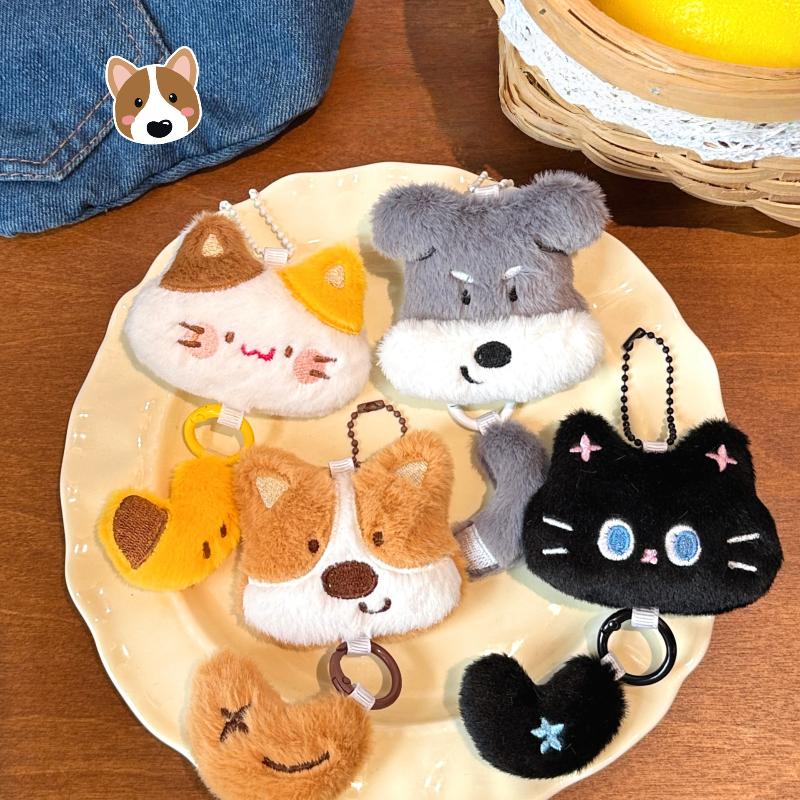 Cartoon Plush Animal Cat Dog Cute Little Tail Pendant Keychain Backpack Hanging Decoration Ornament Couple Friends Gift