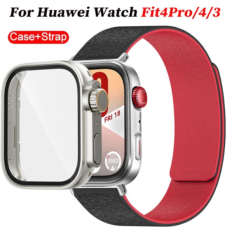 Magnetic Silicone Strap With Change To Ultra Watch Case Screen Protector Cover Fo Fit 4Pro For Huawei Watch Fit4 3 Bracelet