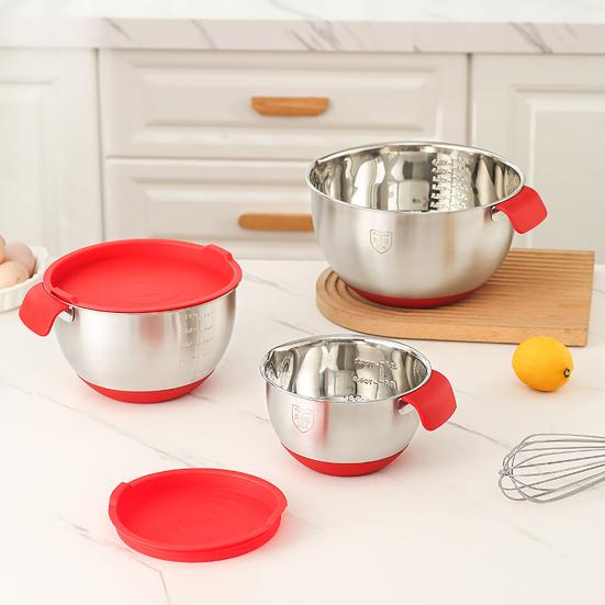 This stainless steel mixing bowl is highly versatile, suitable for mixing salad dressings, beating eggs, kneading dough, serving soup, and washing fruits.