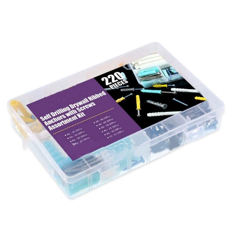 Equipped with a clear plastic storage box, it can neatly and clearly store screws and plastic Anchors of various size inside, makings it easily to find what you need at glance.