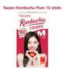 Ingredients: Citric Acid, Erythritol (sweetener), Sodium Bicarbonate, Kombucha Powder 10% [Teazen Signature Kombucha Fermentation Liquid 75% {Signature Blend Extract (Black Tea: Sri Lankan, Indian), Brown Rice (Korean)}, Dextrin], Plum Concentrate Powder 5% [Dextrin, Plum Concentrate 33.63% (Plum 100%, Chilean), Gum Arabic], Fructooligosaccharide 5%, Fiberest, DL-Malic Acid, Red Beet Concentrate Powder (Red Beet: German), Flavoring (2 types), Alpha-Cyclodextrin, Malt Extract Powder, Sucralose (sweetener), Acesulfame Potassium (sweetener), Tricalcium Phosphate, 12 Lactic Acid Bacteria Mixed Powder. Contains milk, soy.