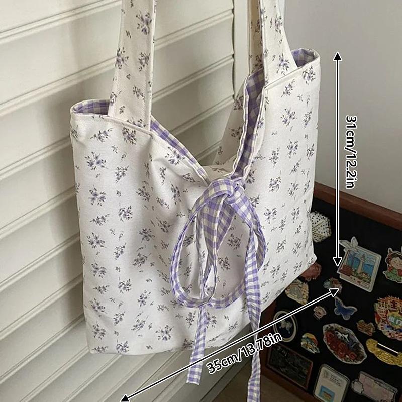 1PC Korean Floral Bow Tie Canvas Bag For Spring Summer Casual Versatile Large Capacity Outdoor Mountaineering Bag Christmas Gift