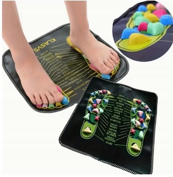Specyfikacja✔️ Wymiary – ok. 35x35 cm ✔️ Materiał – trwałe tworzywo PVC z wypustkami ?✔️ Zasilanie – brak potrzeby baterii lub prądu ⚡✔️ Funkcja – ucisk punktów refleksyjnych stóp ?✔️ Zastosowanie – relaks, poprawa krążenia, redukcja bólu✔️ Waga – lekka i łatwa do przenoszenia – idealna do domu i biura