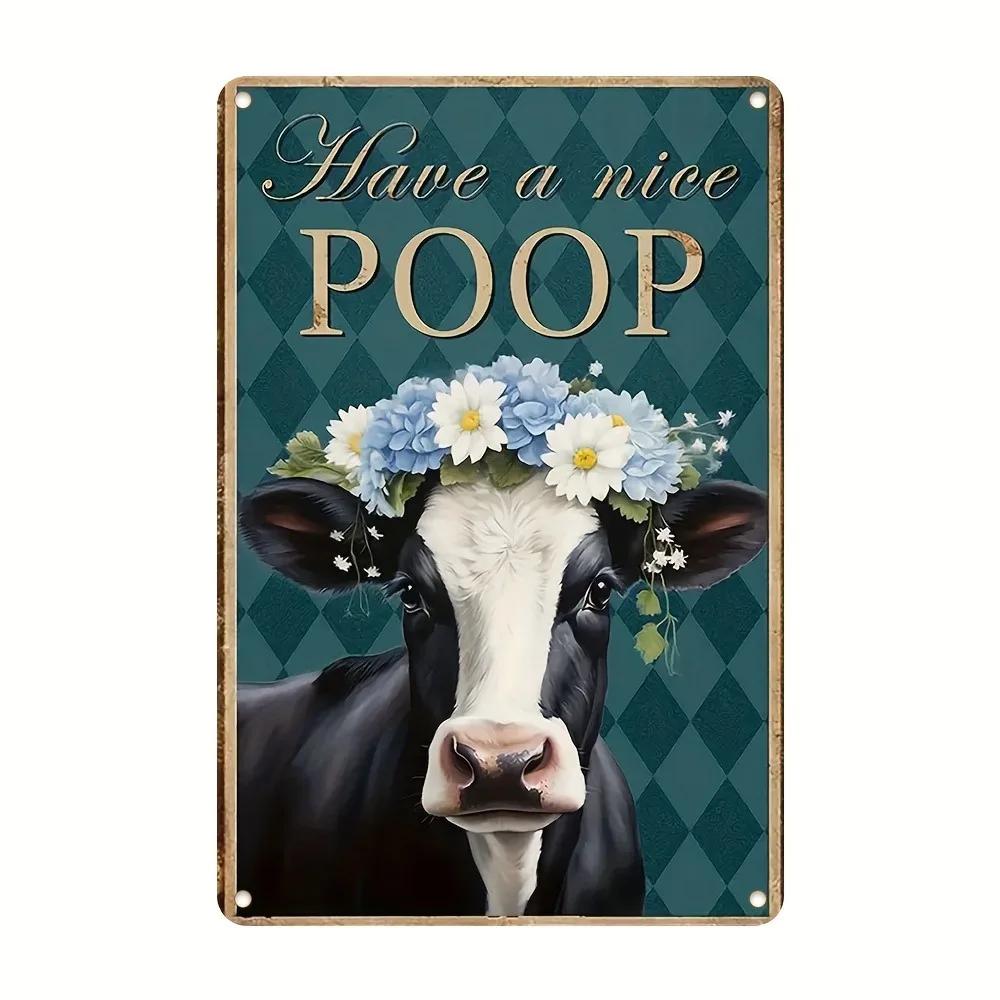 Rustic Floral Cow Have a Poop Aluminum Sign 8x12 UV Printed Durable AntiBend Home Office Bedroom Decor 1pc
