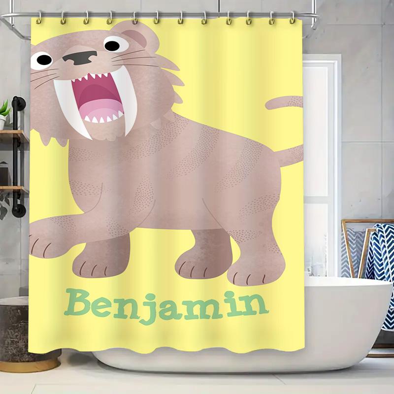 Customized Kids Shower Curtain with Personalized Name Cute Cartoon Animal Design Bright Colors for Bathroom Decor