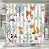 Christmas Shower Curtain, Winter Holiday Farm Snowman Santa Claus Christmas Tree Farmhouse Christmas Balls Bathroom Decorations