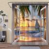 1 Tropical Beach View Shower Curtain - Polyester with Hooks, Sunset Sailboat and Palm Tree Design, Four Seasons Bathroom Decor
