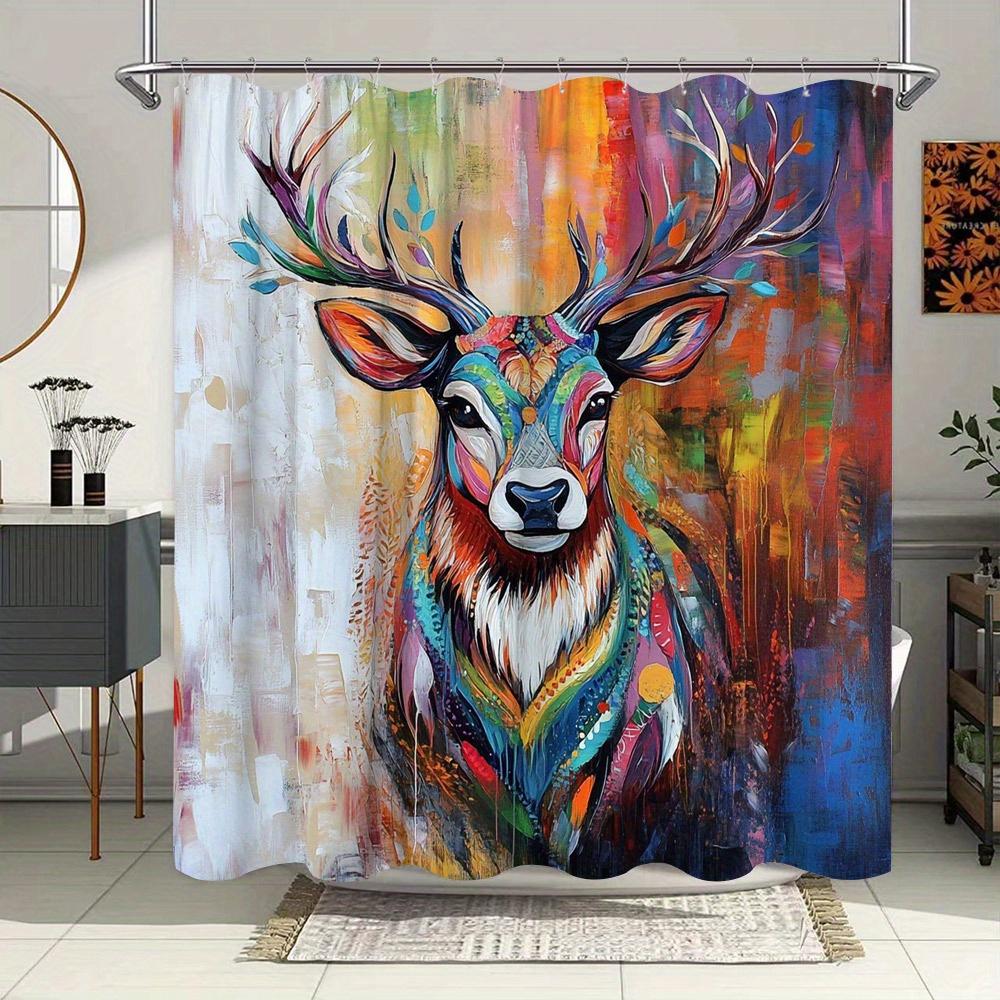 Majestic Deer Shower Curtain - Kaleidoscopic Antlers, Colorful Swirling Fur, Abstract Nature Fantasy, Polyester Bathroom Decor