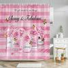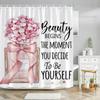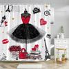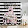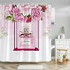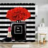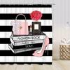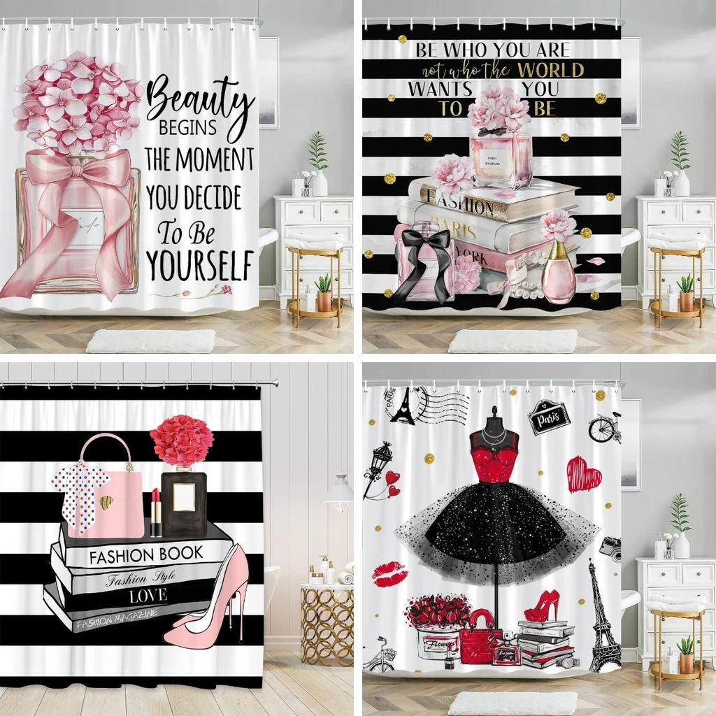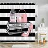 Pink Perfume High Heel Shower Curtain Set Black White Stripes Fashion Girl Woman Bathroom Decor Polyester Bathtub Curtains Hooks