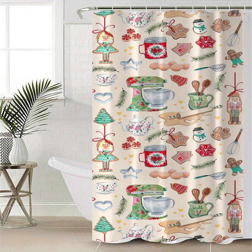 Christmas Digital Print Shower Curtain, Machine Washable, Cartoon Animal Pattern, All-Season Holiday Decor