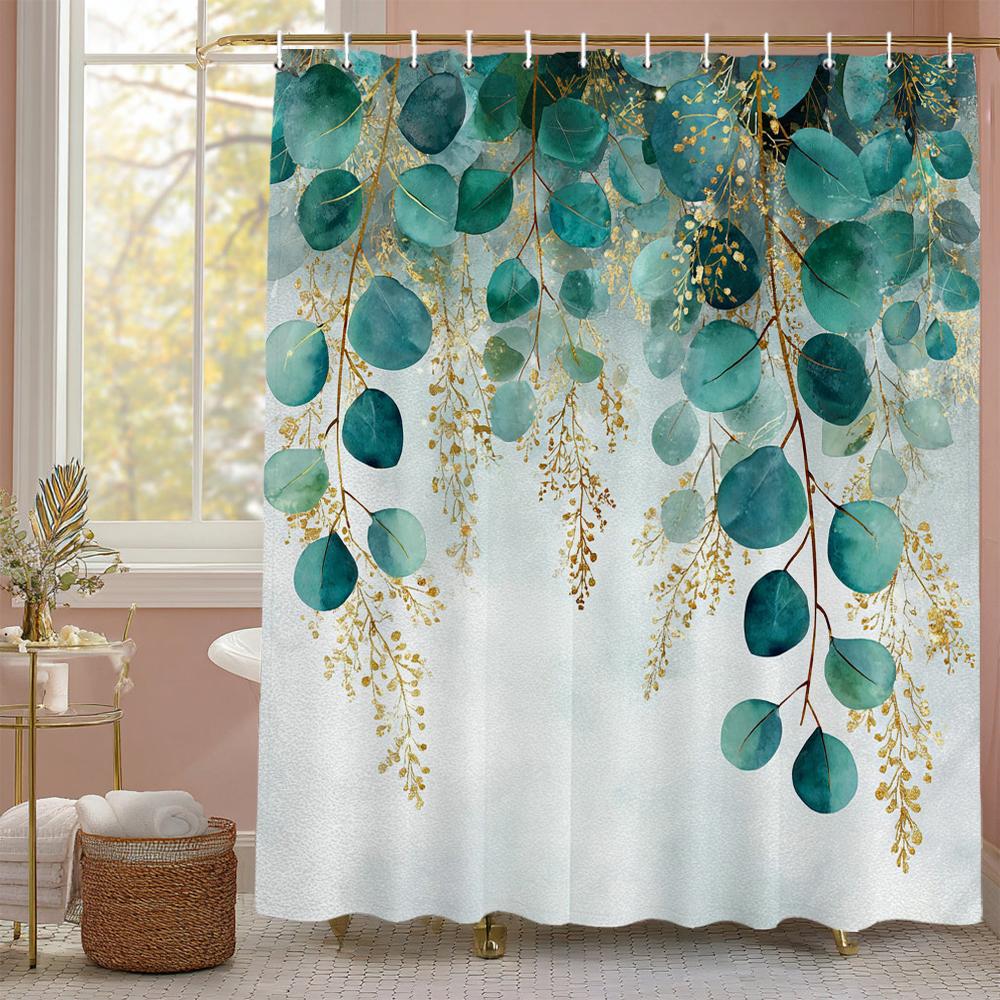 Eucalyptus Leaf Shower Curtain, Bathroom Decorative Shower Curtain, Waterproof Shower Curtain with Hooks