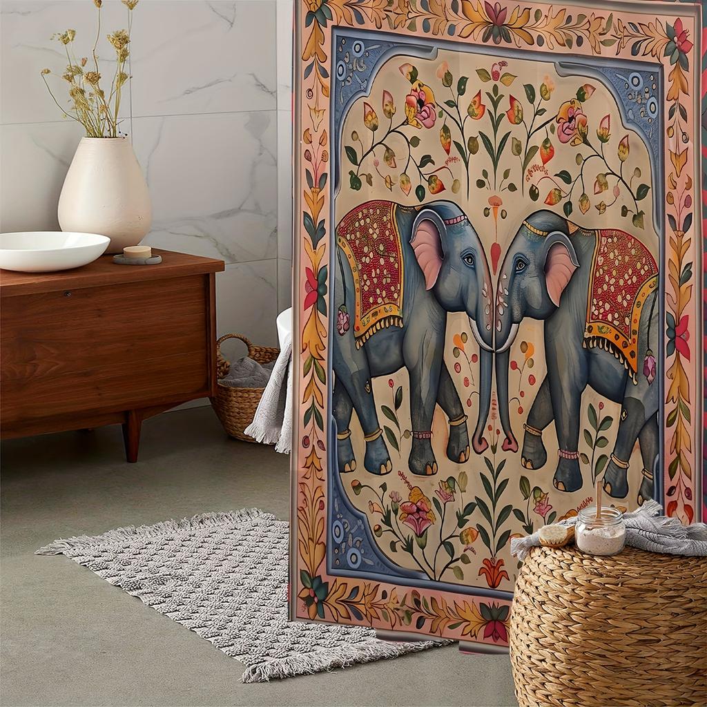 Elephant Totem Print Shower Curtain, Window Curtain with 12 Hooks Curtain for Windows