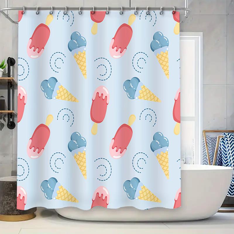 Ice Cream Cone Shower Curtain Waterproof Fabric Bathroom Decor Blue Red Colorful Pattern (C632) [Promotional]