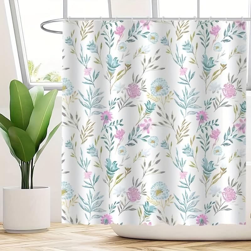 Blue Dandelion Shower Curtain, Elegant & Anti-Fog, Machine Washable Polyester, Pink & Yellow Accents,Modern Bath Decor
