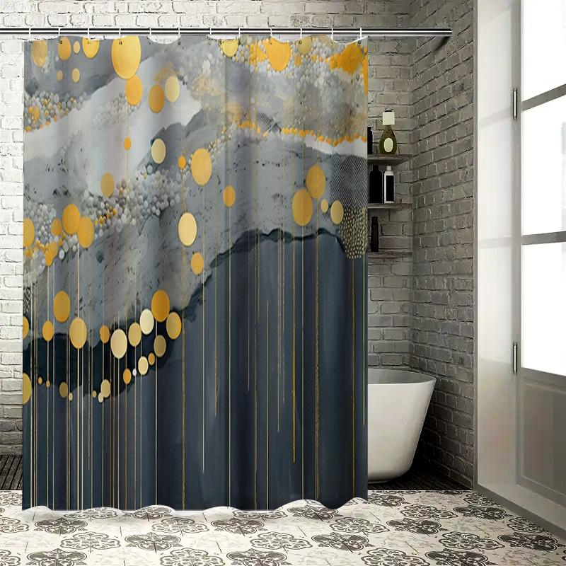 Luxury Gold White Geometric Shower Curtain Set for Bathroom Decor Heavy Duty Waterproof Fabric with Hooks (258x160cm)