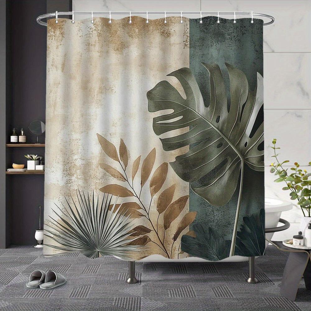 1pc Tropical Leaf Shower Curtain - Vibrant Rainforest Design, Polyester, 72x72 Inches, Includes Hooks, Modern Bathroom Decor