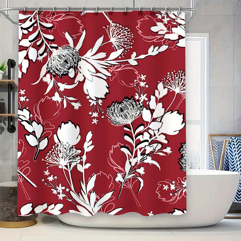 Red Floral Shower Curtain with Black White Flowers for Bathroom Decor Modern Home Textile Decoration Size Customizable 180cm X 1