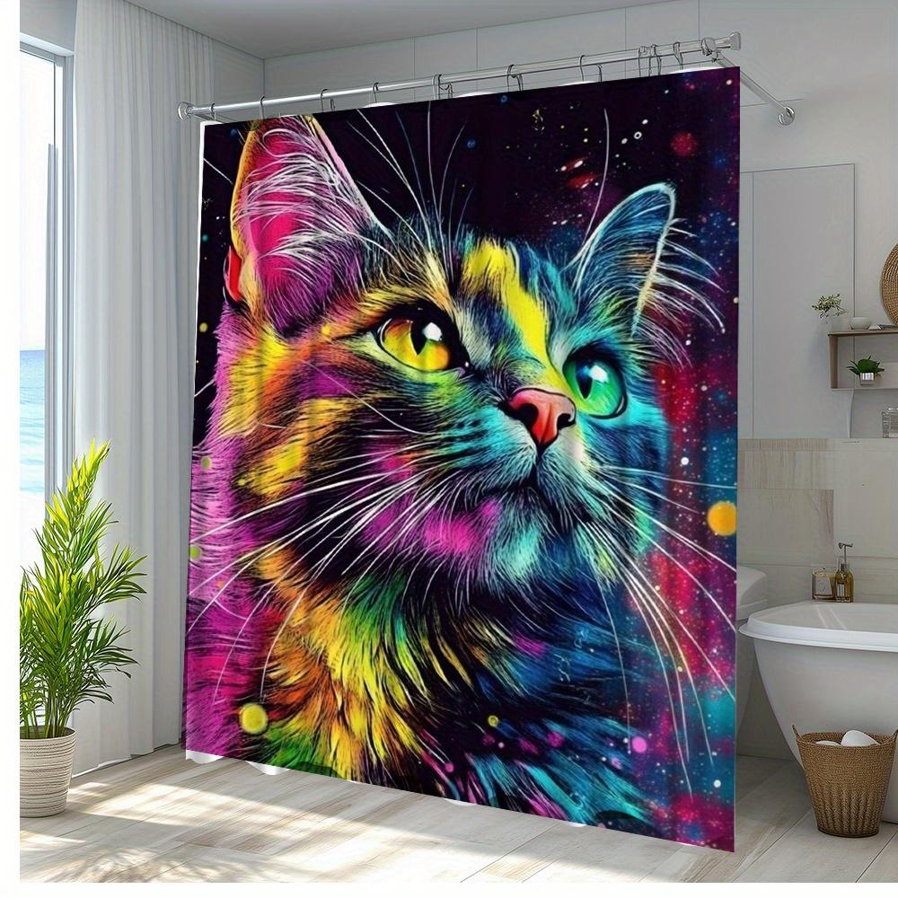 1pc Colorful Cat Shower Curtain 70.8x 70.8 Inch Vivid Cat Design Adds a Vibrant Artistic Touch To Your Bathroom Decoration
