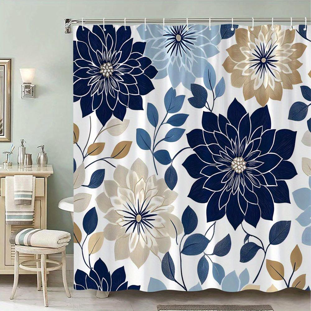 Elegant Navy Blue Floral Shower Curtain - Modern Symmetrical Design, 70x70
