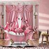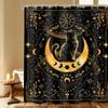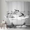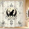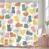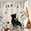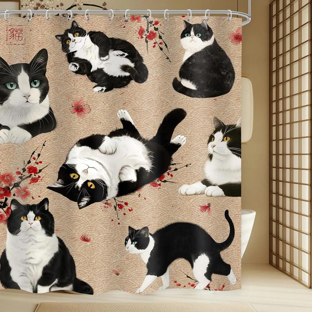 Japanese Cherry Cat Shower Curtain Black White Red Cute Animal Waterproof Polyester Bathroom Home Decorative Cover with Hook