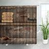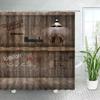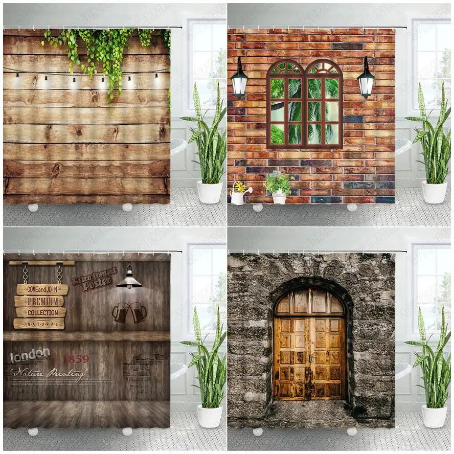 Vintage Wooden Board Shower Curtains Retro Brick Wall Street Lights Farm Barn Door Green Leaves Plant Fabric Home Bathroom Decor