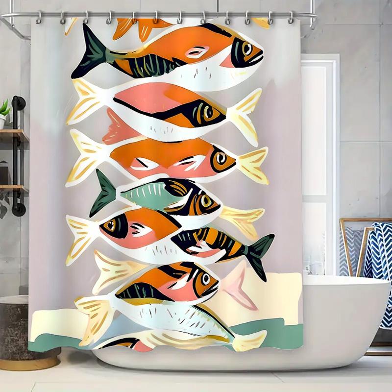 Coastal Ocean Fish Shower Curtain Waterproof Seascapes Bathroom Decor Beach Vibes Home Textile Artistic Print Wall Hanging