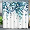 Eucalyptus Leaves Shower Curtain Teal Blue Shower Curtain Set for Bathroom Decor Botanical Plants Print for Bathroom Decor with