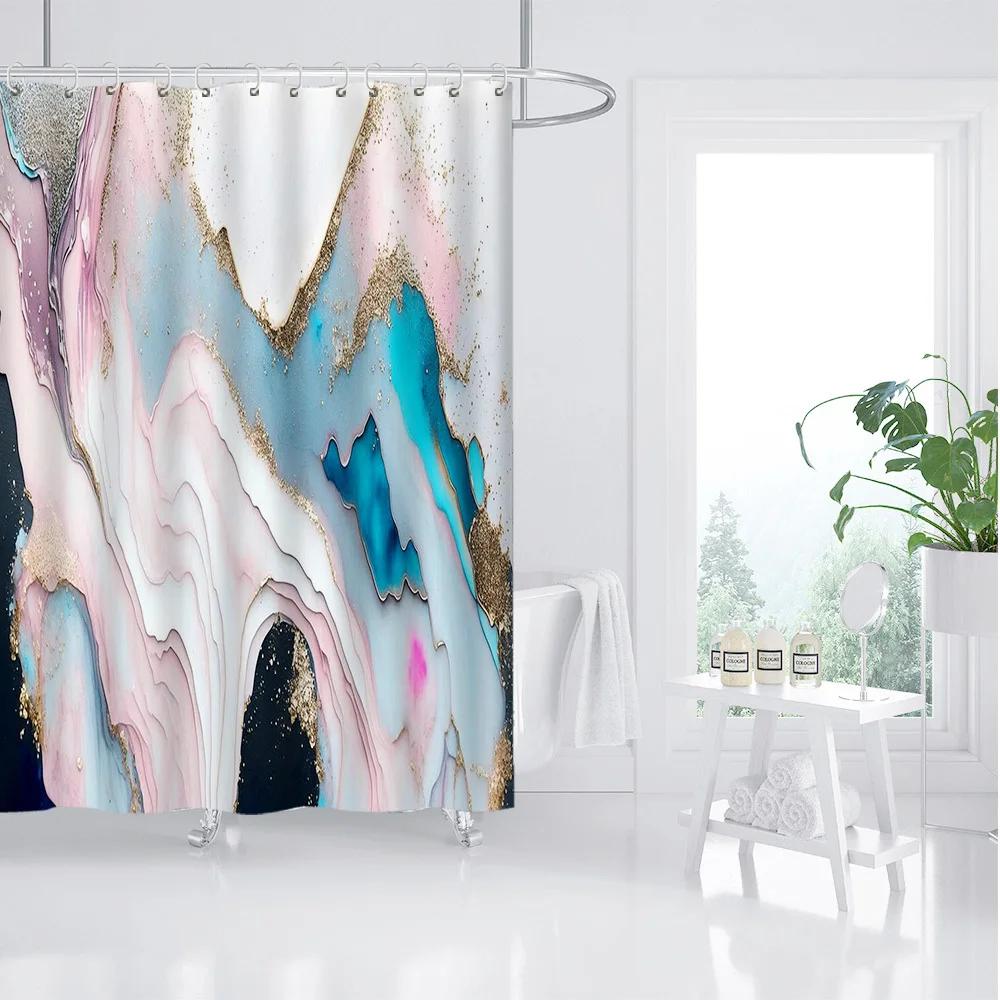 ~O~Nordic Luxury Marble Shower Curtain - Water-Resistant Polyester,Eyelets, Artistic Bath Decor,Advanced Color Flower-Golden Des