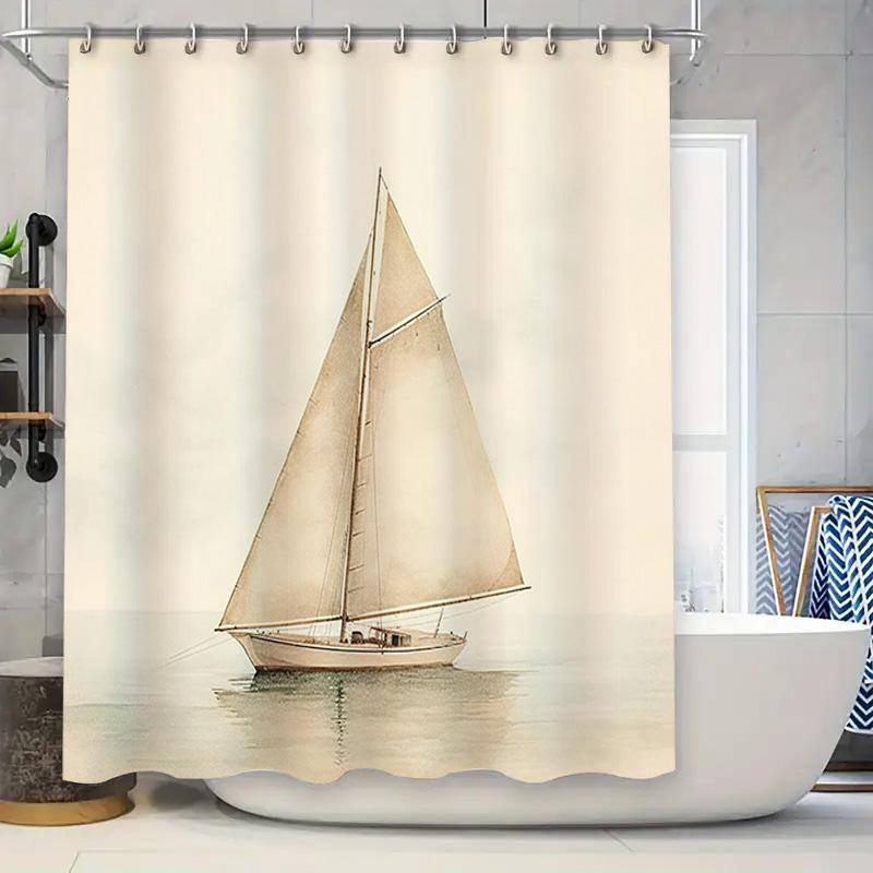 Vintage Style Sailboat Printed Shower Curtain Waterproof Bath Decoration for Home Bathroom Decorations White