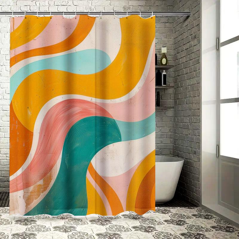 Abstract Waves Shower Curtain Watercolor Print Design for Bathroom Decor In Orange, Green, Pink, Yellow White Colors Buy On AliE