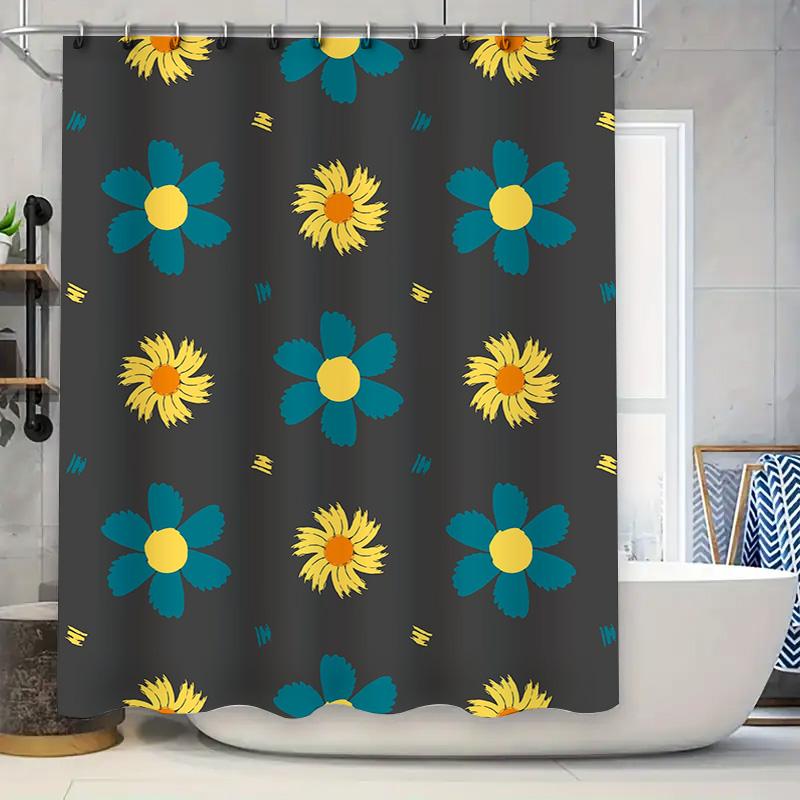 Vintage Retro Flower Shower Curtain Waterproof Decorative Bathroom Liner Home Decoration with Rod Pocket Dark Blue/Teal/Cream Ye
