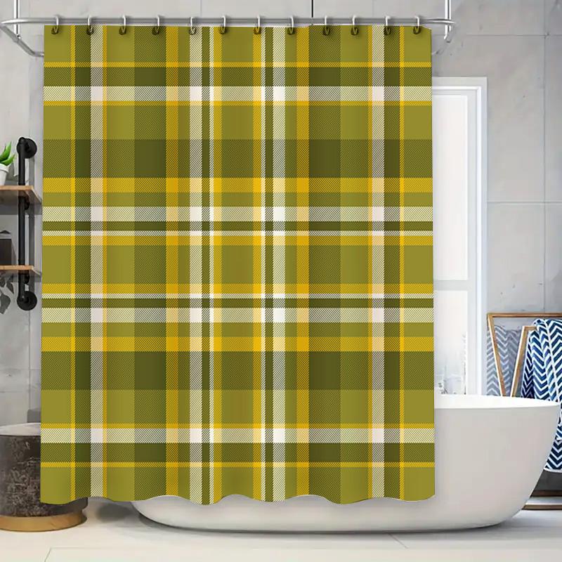 Classic Green Plaid Shower Curtain with White Accents Rectangular Shape for Bathroom Decor (180x180cm)