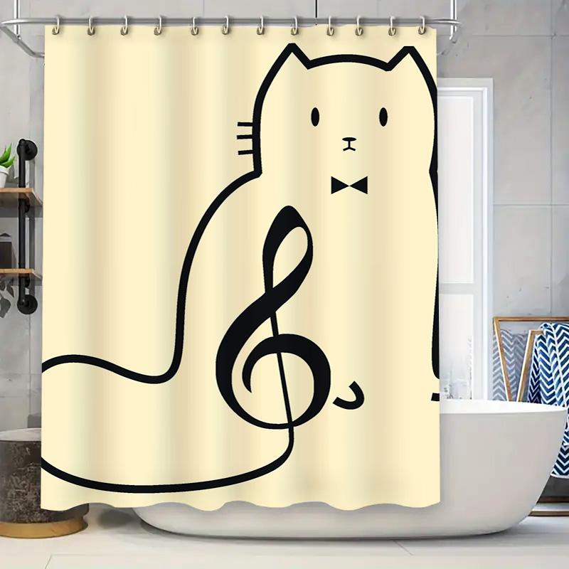 Black Music Note Cat Shower Curtain Bathroom Decor Liner for Kids Bath Room