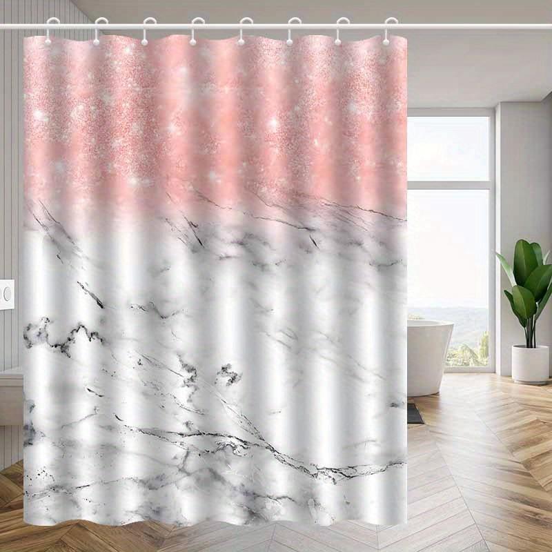 1pc Rose Gold Marble Print Shower Curtain with Hooks, Polyester Fabric, Machine Washable, Suitable for Bathroom Decoration
