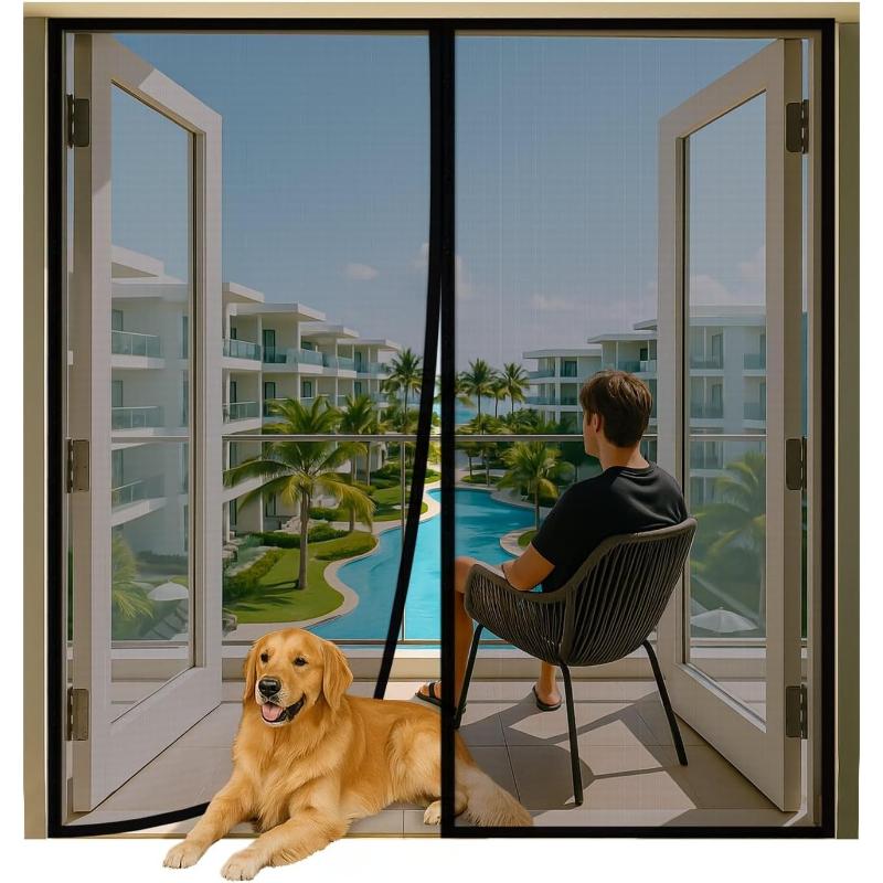 Magnetic Screen Door French Door, Durable Fiberglass Double Door Screen Mesh Curtain Fits Door Opening Up Keep Bugs Out