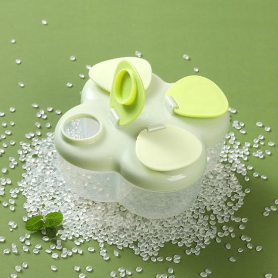 Introducing the milk powder box with four separate flip compartments, designed for ultimate convenience and safety. Each compartment features its own flip cover, ensuring formulas are securely sealed to prevent cross-contamination and spills. With a simple turn of any compartment, you can access the precise amount needed.