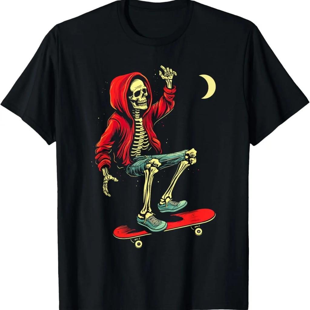 Skater Skeleton Moon Halloween Skateboarder Men, Kids T-Shirt